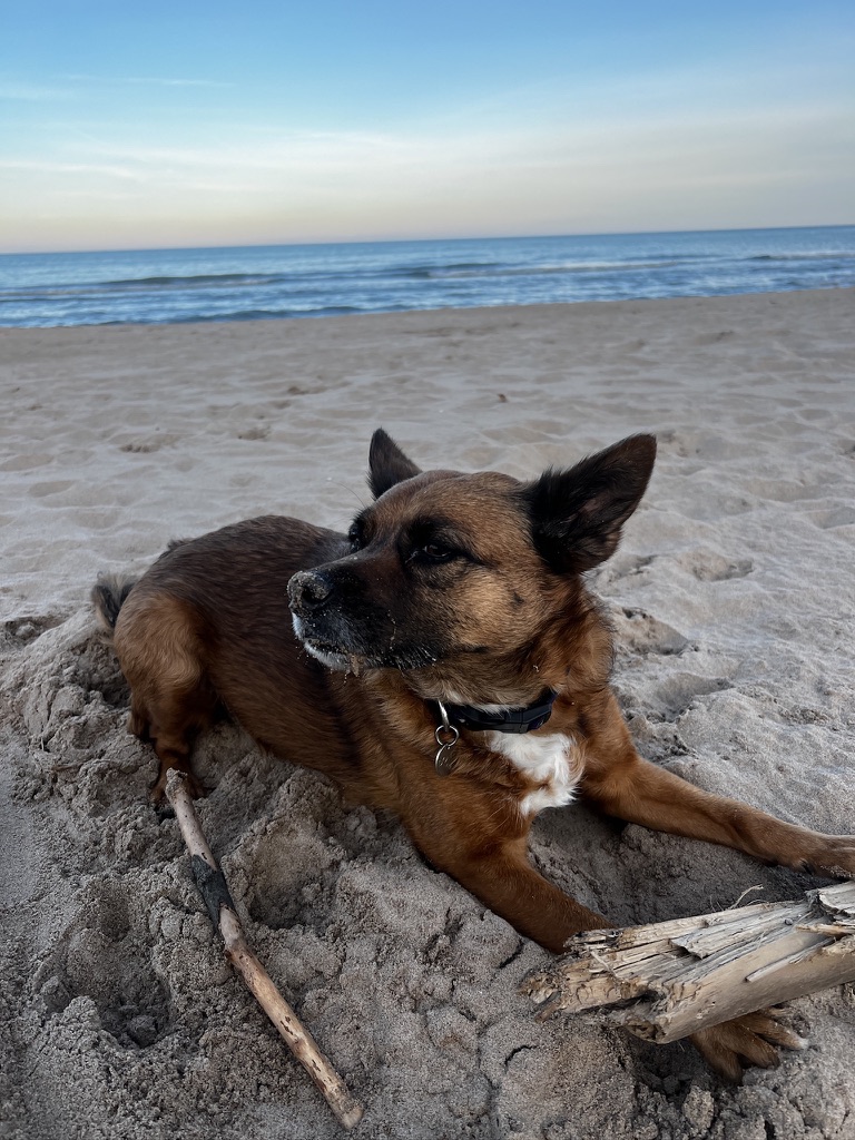 I am a Chicagoland-based content and communications pro who loves carbonated beverages and the internet. I don’t have any normal photos of just myself that are not deeply corny corporate headshots, so here’s a picture of my dog at the beach.